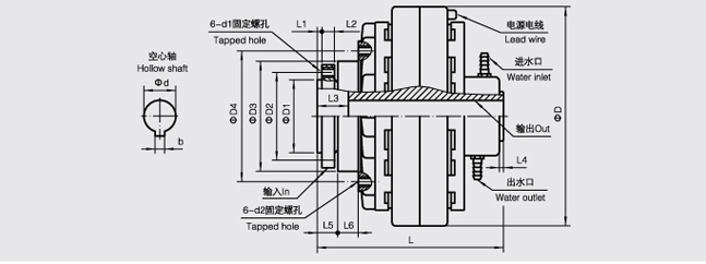 FL-K/Y型( 法蘭輸入、空心軸輸出、止口支撐、水冷卻)磁粉離合器 眾所周知磁粉離合器是由傳動單元和從動單元合并而成。而我公司生產(chǎn)的FL-K/Y型磁粉離合器則是在兩組單元之間的空間,填有粒狀的磁粉。 FL-K/Y型磁粉離合器常用于印刷機械、紙工機械、制袋機械、造紙機械、電線電纜機械、卷線機械、線材機械、捆包包袋機械、紡織機械、織維機械、木工機械、試驗設(shè)備、模擬負(fù)荷用、各種機械的精密性張力控制用、一般工業(yè)用裝置、其他一般產(chǎn)業(yè)機械等等范圍,擁有非常廣泛的作用。 當(dāng)FL-K/Y型磁粉離合器的磁性線圈不導(dǎo)電時,轉(zhuǎn)矩不會從傳動軸傳于從動軸,但如將線圈電磁通電,就由于磁力的作用而吸引磁粉產(chǎn)生硬化現(xiàn)象,在連繼滑動之間會把轉(zhuǎn)矩傳達(dá)。