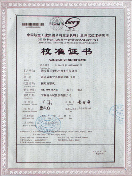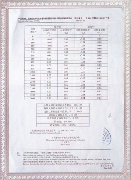 | NE-500標(biāo)準(zhǔn)扭矩機(jī)第三方校準(zhǔn)證書 |