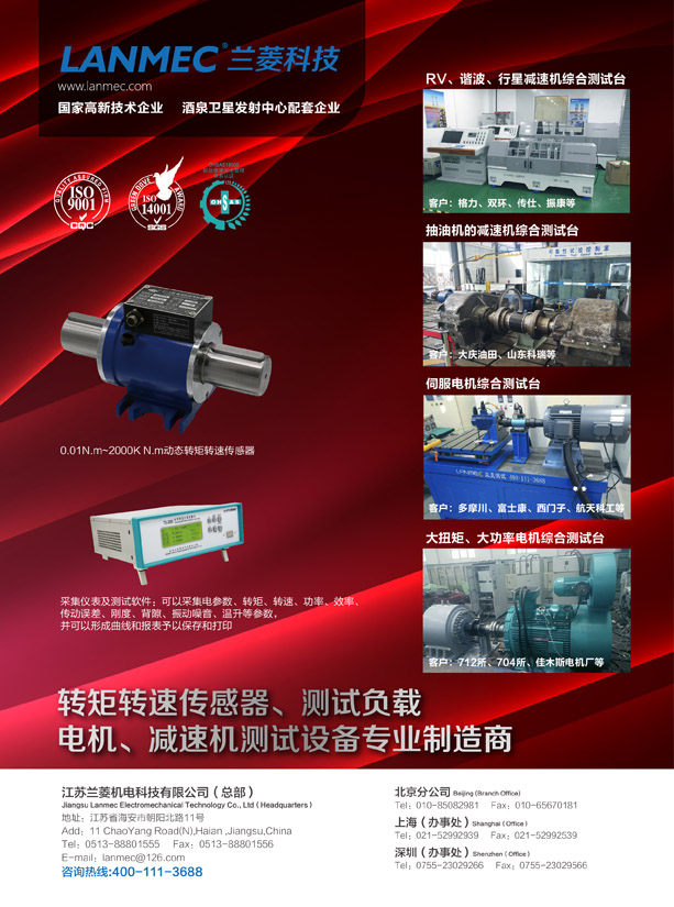 | 蘭菱科技 起源于1974年,是集測(cè)功機(jī)、轉(zhuǎn)矩轉(zhuǎn)速傳感器、模擬負(fù)載的研發(fā)、檢測(cè)、生產(chǎn)于一體的高新技術(shù)企業(yè),在深圳、上海、北京、沈陽(yáng)、成都均設(shè)有辦事處。 蘭菱科技 擁有如下事業(yè)部: 1、轉(zhuǎn)矩轉(zhuǎn)速傳感器事業(yè)部:專(zhuān)業(yè)生產(chǎn)0.01-1000,000N.m的轉(zhuǎn)矩轉(zhuǎn)速傳感器、數(shù)據(jù)采集系統(tǒng),傳感器檢測(cè)中心有50/1,000/5,000/30,000/1000,000N.m標(biāo)準(zhǔn)扭矩校準(zhǔn)機(jī)各1臺(tái),可以對(duì)轉(zhuǎn)矩轉(zhuǎn)速傳感器進(jìn)行動(dòng)態(tài)、靜態(tài)測(cè)試。 2、測(cè)功機(jī)事業(yè)部:專(zhuān)業(yè)生產(chǎn)各類(lèi)動(dòng)力測(cè)試設(shè)備,主要應(yīng)用于電機(jī)、減速機(jī)、發(fā)動(dòng)機(jī)、車(chē)輛底盤(pán)測(cè)試,可以根據(jù)客戶(hù)要求非標(biāo)定制,實(shí)現(xiàn)自動(dòng)裝夾、控制。 3、模擬負(fù)載事業(yè)部:專(zhuān)業(yè)生產(chǎn)0.5-50,000N.m磁粉制動(dòng)器(磁粉測(cè)功機(jī))、0.1-1,200Kw電渦流制動(dòng)器(電渦流測(cè)功機(jī))、0.75-2,000Kw電力測(cè)功機(jī)(可回饋) 4、儀表軟件事業(yè)部: 專(zhuān)業(yè)生產(chǎn)、研發(fā)各類(lèi)檢測(cè)儀表、測(cè)試軟件、集成檢測(cè)柜,可以實(shí)現(xiàn)數(shù)據(jù)自動(dòng)采集、曲線(xiàn)、報(bào)表等功能,也可根據(jù)客戶(hù)要求非標(biāo)定制。 蘭菱科技 經(jīng)過(guò)多年的不懈努力,工廠現(xiàn)占地30000平米、廠房15000多平米,年產(chǎn)銷(xiāo)近50000臺(tái)套,年產(chǎn)值近億元。產(chǎn)品質(zhì)量、生產(chǎn)規(guī)模及產(chǎn)量穩(wěn)居全國(guó)前列。 過(guò)硬的產(chǎn)品質(zhì)量和健全的售后服務(wù)體系,為公司贏得國(guó)內(nèi)外客戶(hù)4000多家。多年來(lái),公司還與航天、航空等軍工單位合作開(kāi)發(fā)了多種產(chǎn)品,是中國(guó)酒泉衛(wèi)星發(fā)射中心的定點(diǎn)配套單位。 我們熱忱歡迎您光臨本公司,為我們蘭菱機(jī)電向更高目標(biāo)發(fā)展多提寶貴意見(jiàn)!