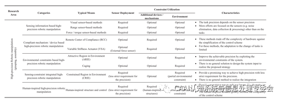 (1)基于傳感信息的方法(2)基于柔性機構(gòu)的方法(3)基于環(huán)境約束的方法 (4)基于感知約束集成的方法(5)仿生的方法 1、基于感知信息的高精度機器人操控方法 典型的用于機器人操控任務(wù)的傳感器主要包括視覺傳感器、距離傳感器和力/扭矩傳感器,如圖2所示。
