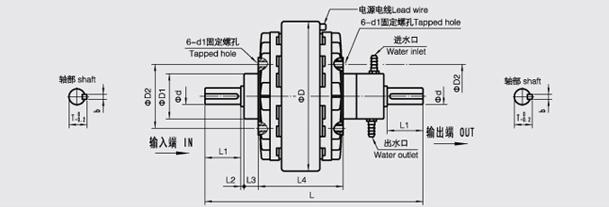 FL/Y型( 軸輸入、軸輸出、止口支撐、水冷卻)磁粉離合器 由于FL/Y型磁粉離合器具有的一些獨有的特性,現(xiàn)已被廣泛應(yīng)用于造紙、印刷、塑料、橡膠、紡織、印染、電線電纜、冶金以及其他相關(guān)卷取加工行業(yè)中收卷和放卷張力的控制。 FL/Y型磁粉離合器是由主動轉(zhuǎn)子、從動轉(zhuǎn)子、含激磁線圈的磁軛組成, 激磁線圈無電流通過時,工作腔中的磁粉呈松散狀態(tài)。三部分相對同心裝配。 在主動轉(zhuǎn)子所產(chǎn)生的離心力的作用下,F(xiàn)L/Y型磁粉離合器形成了一個可以相對轉(zhuǎn)動的整體,在主動轉(zhuǎn)子和從動轉(zhuǎn)子之間的環(huán)形空隙內(nèi)填有高導(dǎo)磁性的合金磁粉。 當(dāng)磁粉被均勻地甩在主動轉(zhuǎn)子的內(nèi)壁上,主、從動轉(zhuǎn)子之間特定的相互作用,使得FL/Y磁粉離合器處于分離狀態(tài),沒有轉(zhuǎn)矩的傳遞。