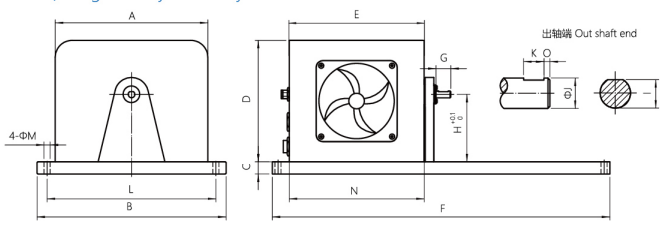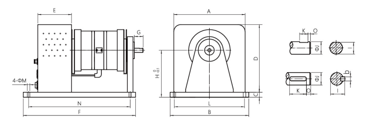 型號 | A | B | C | D | E | F | G | H | I | φJ(h6) | K | L | φM | N | O |