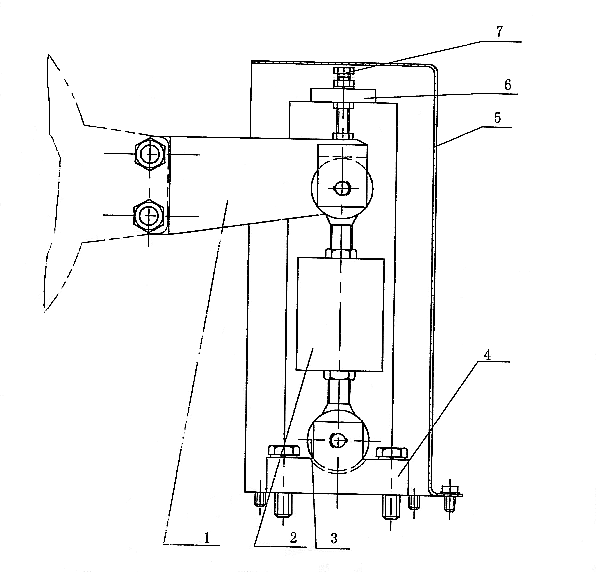 圖四(a)YP20、YP60、YP120、YP250、YP380、YP520、YP660 測力機構(gòu)部件示意圖 1、制動臂 2、拉壓力傳感器 3、活節(jié)螺栓 4、支承座 5、保護(hù)罩 6、活動板 7、螺栓