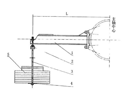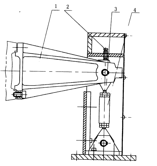 圖四(b)YP1900測力機機構(gòu)示意圖 1、制動臂 2、固定螺栓 3、活節(jié)螺栓 4、拉壓力傳感器