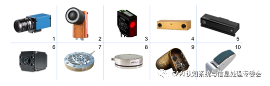 (1)高速工業(yè)相機(2)智能工業(yè)攝像頭(3)激光距離傳感器 (4)立體相機(5)結(jié)構(gòu)光傳感器(6)飛行時間相機(7)關(guān)節(jié)扭矩傳感器 (8)腕力/扭矩傳感器(9)手指壓力傳感器(10)手指觸覺陣列 1)視覺傳感器 首先,視覺傳感器可用于目標(biāo)識別和姿態(tài)估計,許多計算機視覺算法被用于機器人操控[1]-[7]。其次,視覺傳感器可以用于測量和定位。根據(jù)雙目或多目視覺系統(tǒng)的視差原理,可以計算出目標(biāo)物體的位置和方向。在[8]中開發(fā)了一種基于多功能立體視覺系統(tǒng)的立體視覺分割方法,它可以測量和跟蹤具有曲面的物體的位置和方向[9]。在[10]中提出了一種用于已知目標(biāo)三維姿態(tài)估計的視覺引導(dǎo)機器人系統(tǒng),可以有效地抓取3-D目標(biāo)。[11]中設(shè)計了一個高精度視覺伺服微裝配系統(tǒng),該系統(tǒng)能夠做到微軸孔對準(zhǔn)與軸孔裝配同時進行。研究人員利用視覺信息,提出了一種基于支持向量機(SVM)與主元分析(PCA)融合的區(qū)間估計優(yōu)化算法,根據(jù)實驗數(shù)據(jù)[12]訓(xùn)練機器人終端運動參數(shù),規(guī)劃運動軌跡。 2)距離傳感器 距離傳感器可以感知目標(biāo)點和傳感器之間的距離,采用如立體三角測量、光片三角測量、結(jié)構(gòu)光、飛行時間、干涉測量、編碼孔徑測量等方法獲取數(shù)據(jù)。 以下是機器人操控任務(wù)中常用的幾種距離傳感器: (1)激光測距傳感器可以快速準(zhǔn)確地獲取傳感器與目標(biāo)[13]之間的距離,主要缺點是成本高。 (2)立體相機:使用兩臺相機拍攝圖像,使用匹配算法或三角測量[14]-[17]計算距離。它的硬件復(fù)雜度適中,但計算復(fù)雜度較高且在弱光或圖像特征不清晰的情況下不能正常工作。 (3)結(jié)構(gòu)光傳感器,通過計算光的變形,向物體發(fā)射可控結(jié)構(gòu)光,獲取目標(biāo)參數(shù)。結(jié)構(gòu)光的優(yōu)點是獨立于場景,降低了匹配的難度。缺點是多個傳感器的相互干擾,不能在強光下工作。 (4)飛行時間相機,通過連續(xù)發(fā)送光脈沖,接收物體返回的光,記錄光的飛行時間,得到距離。與激光測距傳感器相似,這種傳感器具有良好的精度和魯棒性但部署成本高。 距離傳感器(圖2,圖片3-6所示)可以進行目標(biāo)測量和姿態(tài)估計。在[18]中利用立體三角測量法實現(xiàn)了基于手眼立體相機的目標(biāo)三維建模,并提出了一種分析方法來判斷給定對象在真實環(huán)境下的局部和全局可達性。 3)力傳感器 在機器人操控中,力/扭矩信息被廣泛用于消除零部件的微小位姿誤差。機器人操控中常用的力傳感器(圖2,圖片7-10所示),包括六軸力/扭矩傳感器和觸覺傳感器。前者通常安裝在機器人的關(guān)節(jié)和手腕上,通過剛性連接感知物體上的力或扭矩;后者主要安裝在機械手指尖或手掌上,用來感知對應(yīng)機械部分的正壓力。 (1)關(guān)節(jié)扭矩傳感器:將傳感器安裝在機器人的關(guān)節(jié)上,獲取機器人運動時的扭矩信息。一方面,利用關(guān)節(jié)扭矩來識別機器人與物體之間的接觸關(guān)系。另一方面,關(guān)節(jié)扭矩信息常用于機械手的柔性控制。在[19]中提出了一種利用模糊推理機(FIM)進行裝配的方法,該方法可以根據(jù)裝配過程中的接觸信息快速推斷出當(dāng)前的接觸狀態(tài)。研究人員設(shè)計了一種基于關(guān)節(jié)扭矩信息的柔性控制器,在關(guān)節(jié)機械阻抗未知的情況下調(diào)節(jié)末端執(zhí)行器的柔性。[20]將主動柔度控制算法與被動柔度機制相融合,在基于肌腱驅(qū)動的機械手平臺上實現(xiàn)了安全的人機交互。研究人員利用關(guān)節(jié)力矩信息設(shè)計了平衡前饋控制器,通過迭代學(xué)習(xí)控制[21]實現(xiàn)類人運動。 (2)腕力/扭矩傳感器:與關(guān)節(jié)扭矩傳感器類似,腕部傳感器既可用于確定機器人與物體之間的接觸狀態(tài)[22],也可用于確定機器人操控系統(tǒng)的慣性參數(shù)[23]。在[24]中提出了一種利用力或扭矩信息準(zhǔn)確識別在位置/方位不確定條件下的接觸狀態(tài)的方法。[25]實現(xiàn)了一種基于力/扭矩傳感信息的準(zhǔn)靜態(tài)分析方法。當(dāng)機器人遇到較大的方向誤差時,該方法可以有效地調(diào)整力/扭矩。由于力/扭矩信息在裝配過程中是局部和瞬態(tài)的,研究力矩信息與其他全局信息如何融合在一起是一個很有價值的發(fā)展方向。如何平衡準(zhǔn)確性和靈敏度之間的矛盾[26],以及如何實現(xiàn)各種接觸/非接觸狀態(tài)之間的有效切換[27]也是人們感興趣的問題。 (3)手掌和指尖觸覺傳感器:將觸覺傳感器安裝在手掌或手指的末端,獲取接觸力或壓力。它們通常用于接觸狀態(tài)識別[28],用于摩擦估計[29],或用于抓取過程中的滑移檢測[30]。為了解決抓取問題,研究人員對抓取接觸模型做了大量基礎(chǔ)性工作[31]-[33]。[34]-[36]中對機器人柔性手指抓取模型進行了一系列研究。研究者使用安裝在靈巧手上的接觸傳感器來高精度、高速地估計平面物體的位置和方向。[37]設(shè)計了一種利用觸覺信息作為反饋來分析抓取成功率的算法。利用人工智能方法分析觸覺傳感器獲取的信息是一種趨勢。清華大學(xué)孫富春教授團隊提出的基于極限學(xué)習(xí)機(ELM)的觸覺感知識別方法[38]。此外,[39]使用監(jiān)督學(xué)習